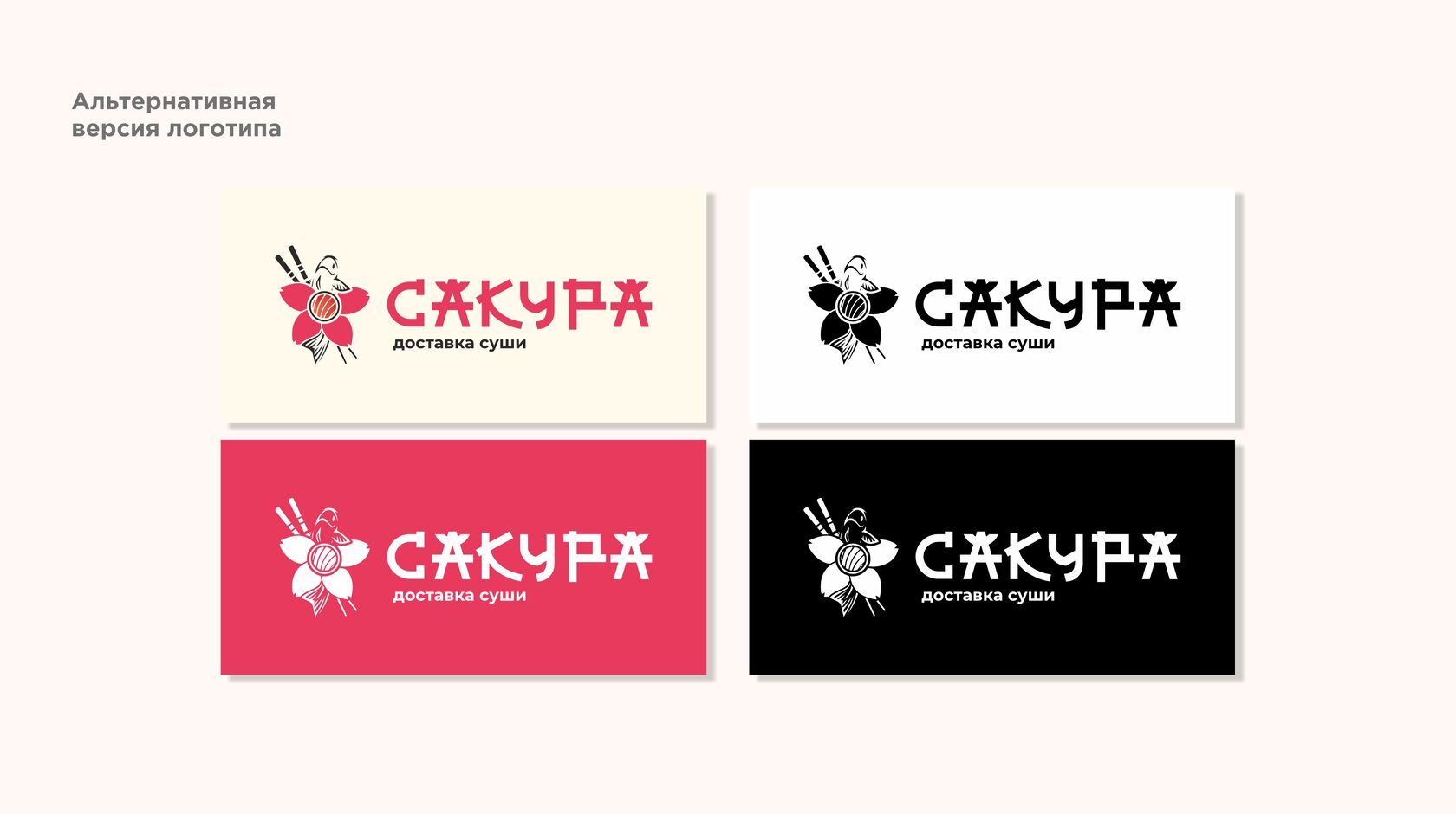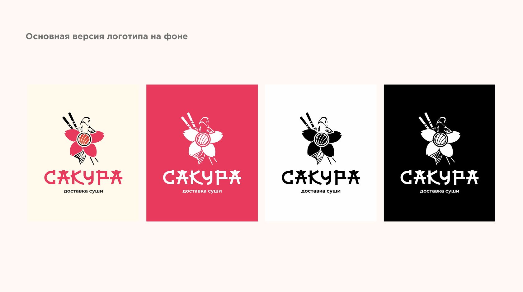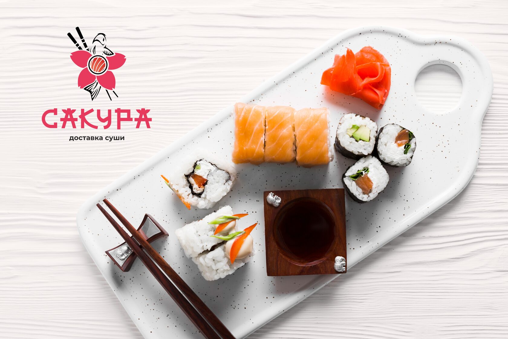 Знак логотипа содержит символы традиционно ассоциирующиеся с японской культурой — цветок сакуры, которая стала и названием компании. Японский карп — символ упорства и умения противостоять любым трудностям, что компания уже не раз доказывала за 7 лет своей успешной работы. Хаси — японские палочки для еды. И в центре всего рол — основное блюдо компании.