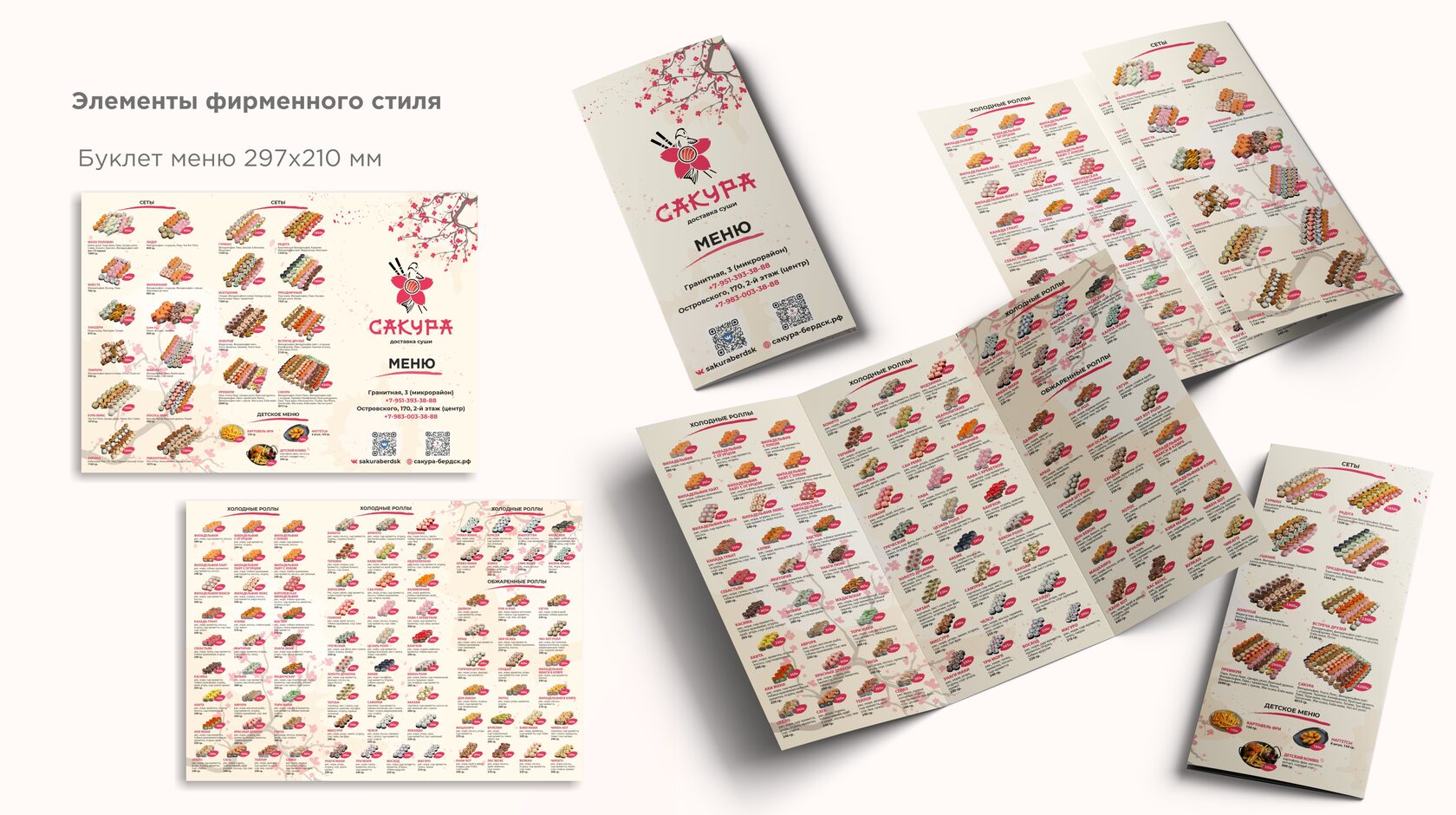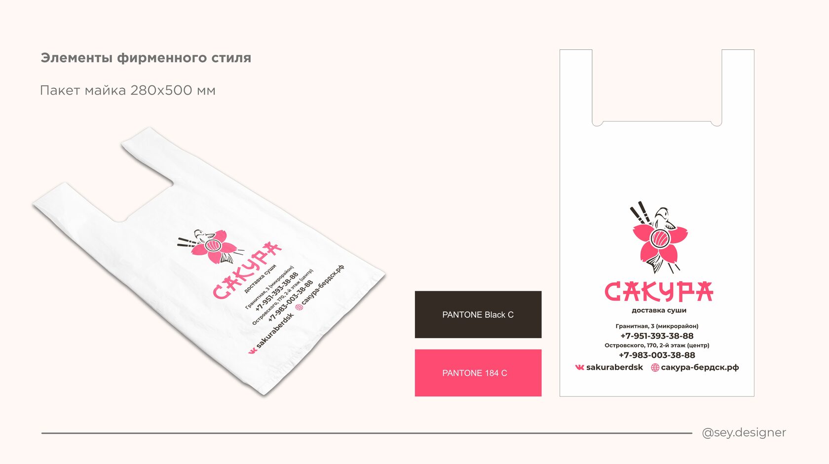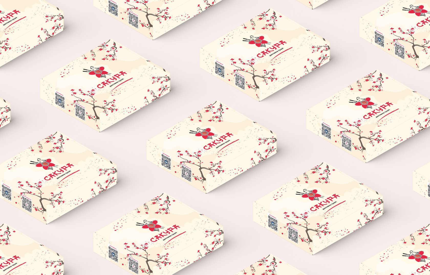 Знак логотипа содержит символы традиционно ассоциирующиеся с японской культурой — цветок сакуры, которая стала и названием компании. Японский карп — символ упорства и умения противостоять любым трудностям, что компания уже не раз доказывала за 7 лет своей успешной работы. Хаси — японские палочки для еды. И в центре всего рол — основное блюдо компании.