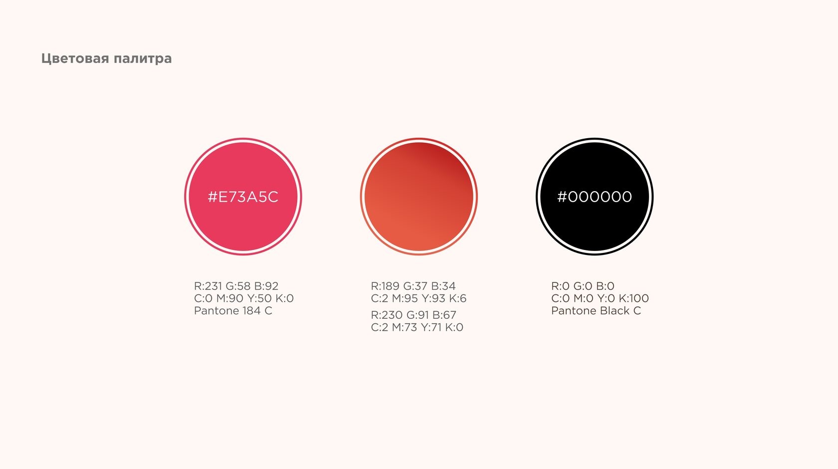 Возможно оставить цветовую гамму, которая есть сейчас: розовый, черный, белый