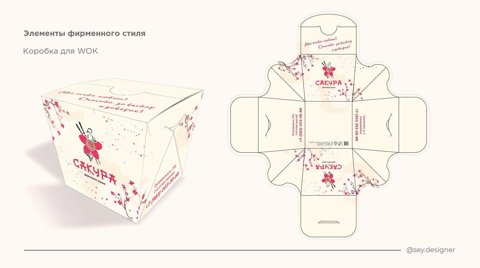 Для проекта был выбран нежно розовый цвет — цветы сакуры, красно-оранжевый градиент — цвет сёмги, которую часто используют для приготовления суши и ролов, черный цвет — тушь используемая для каллиграфии.